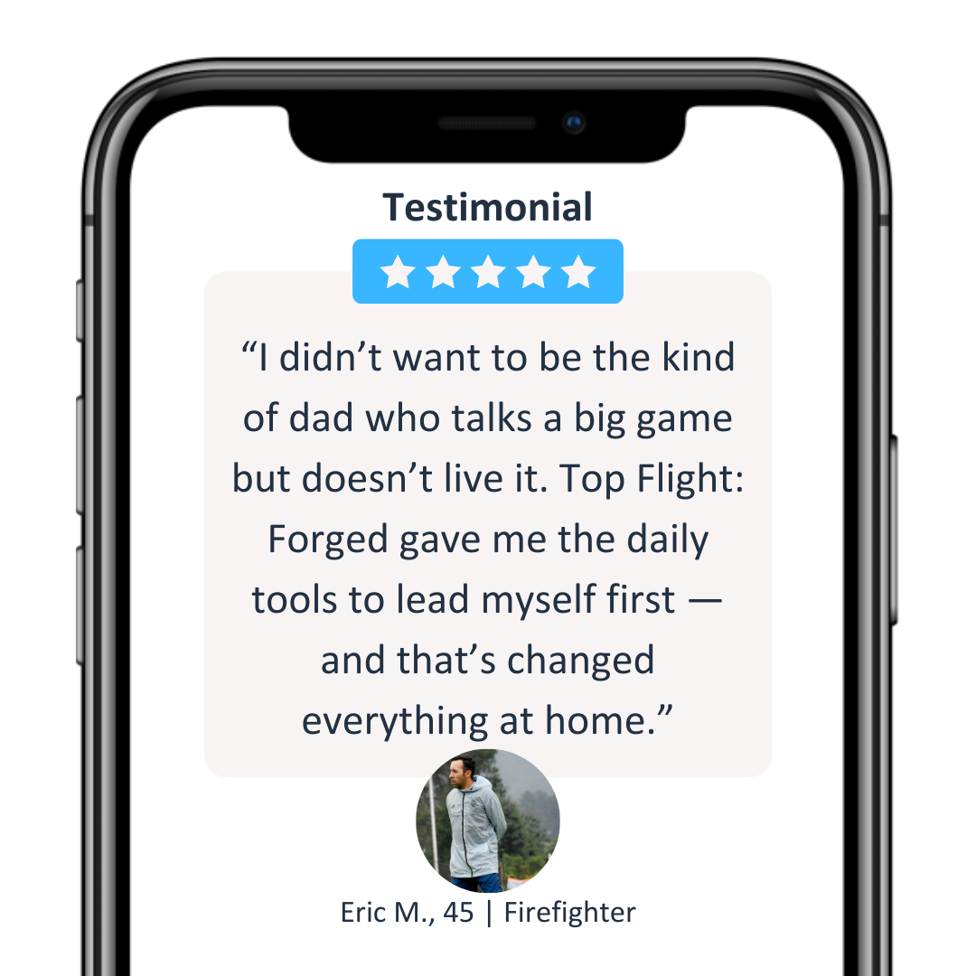 Top Flight: Forged is for men who are ready to rebuild their edge, earn back their own respect, and lead themselves with clarity and conviction.